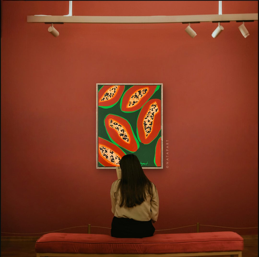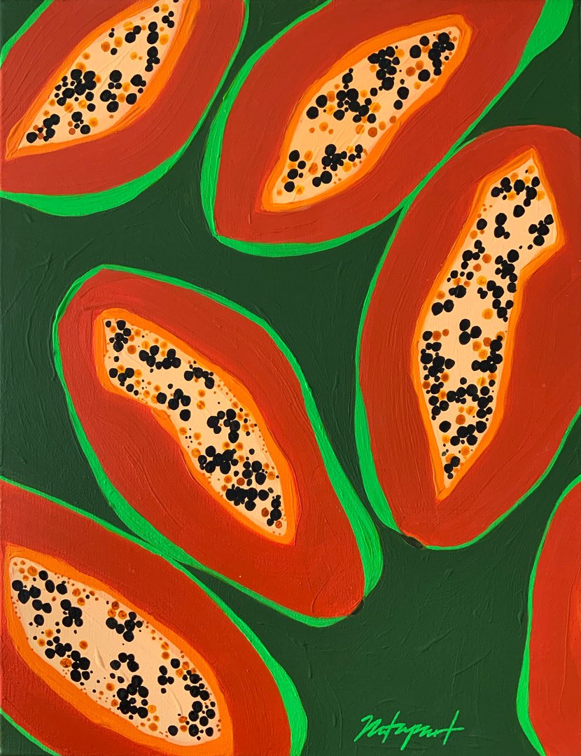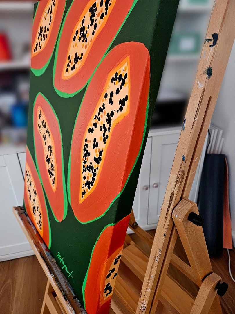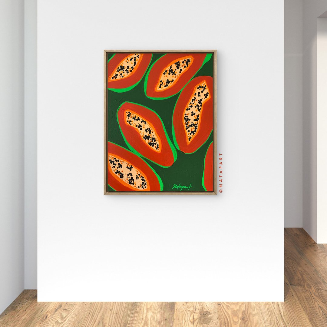 Papaya Tropical Fruit Original Painting on Canvas